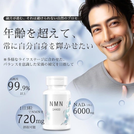 NMN サプリメント 14400㎎ (1粒に240㎎)高純度99%以上 コラーゲン NAD+ レスベラトロール コエンザイムQ10 60カプセル 国内GMP認定工場通常価格 ¥4,099通常価格単価 / あたり¥4,099セール価格 ¥4,099