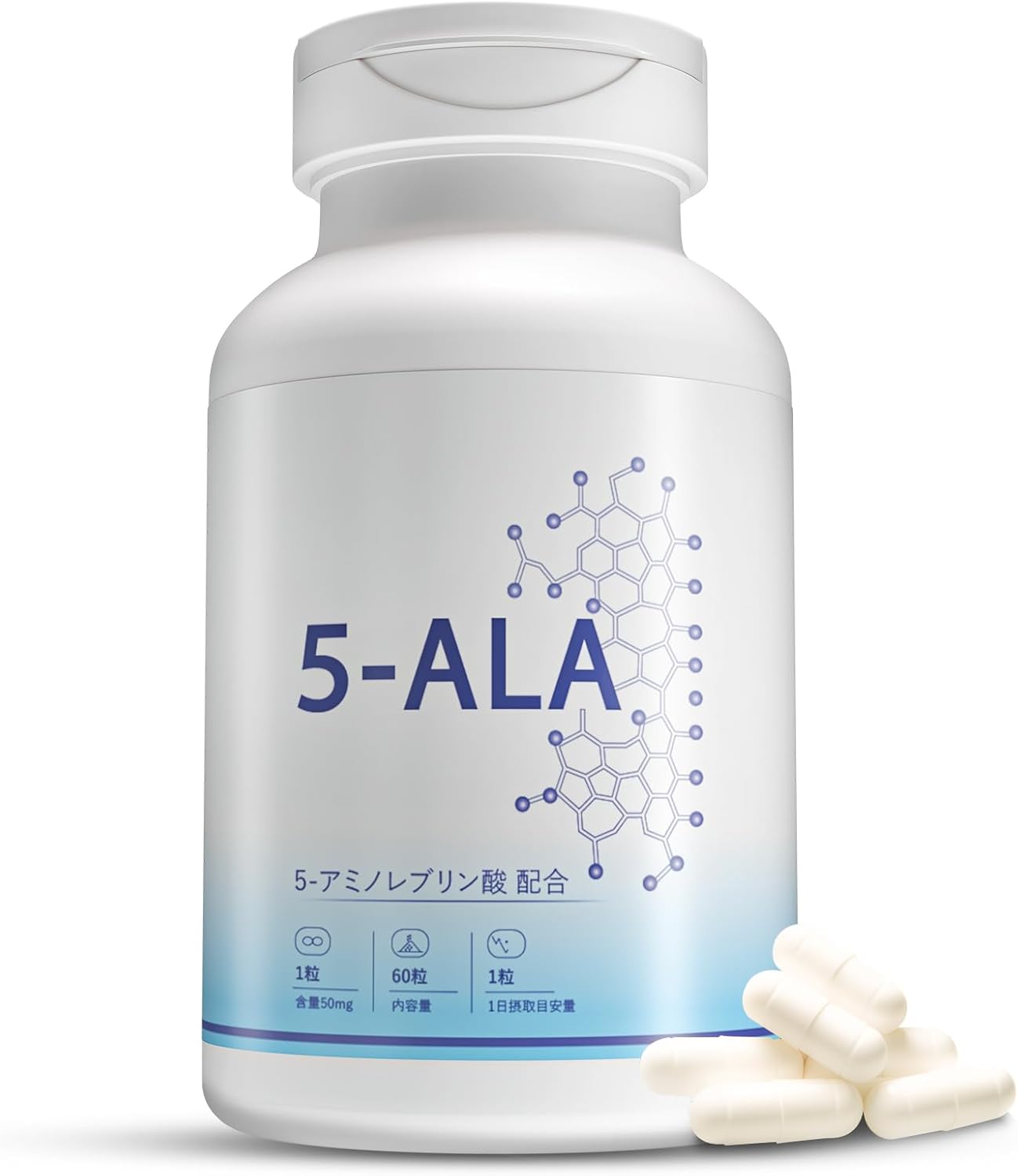 5-ALA サプリメント 3000mg 高純度100% (50mg/粒、60カプセル)日本製 アスタキサンチン添加 二酸化チタン不使用 国内GMP認定工場